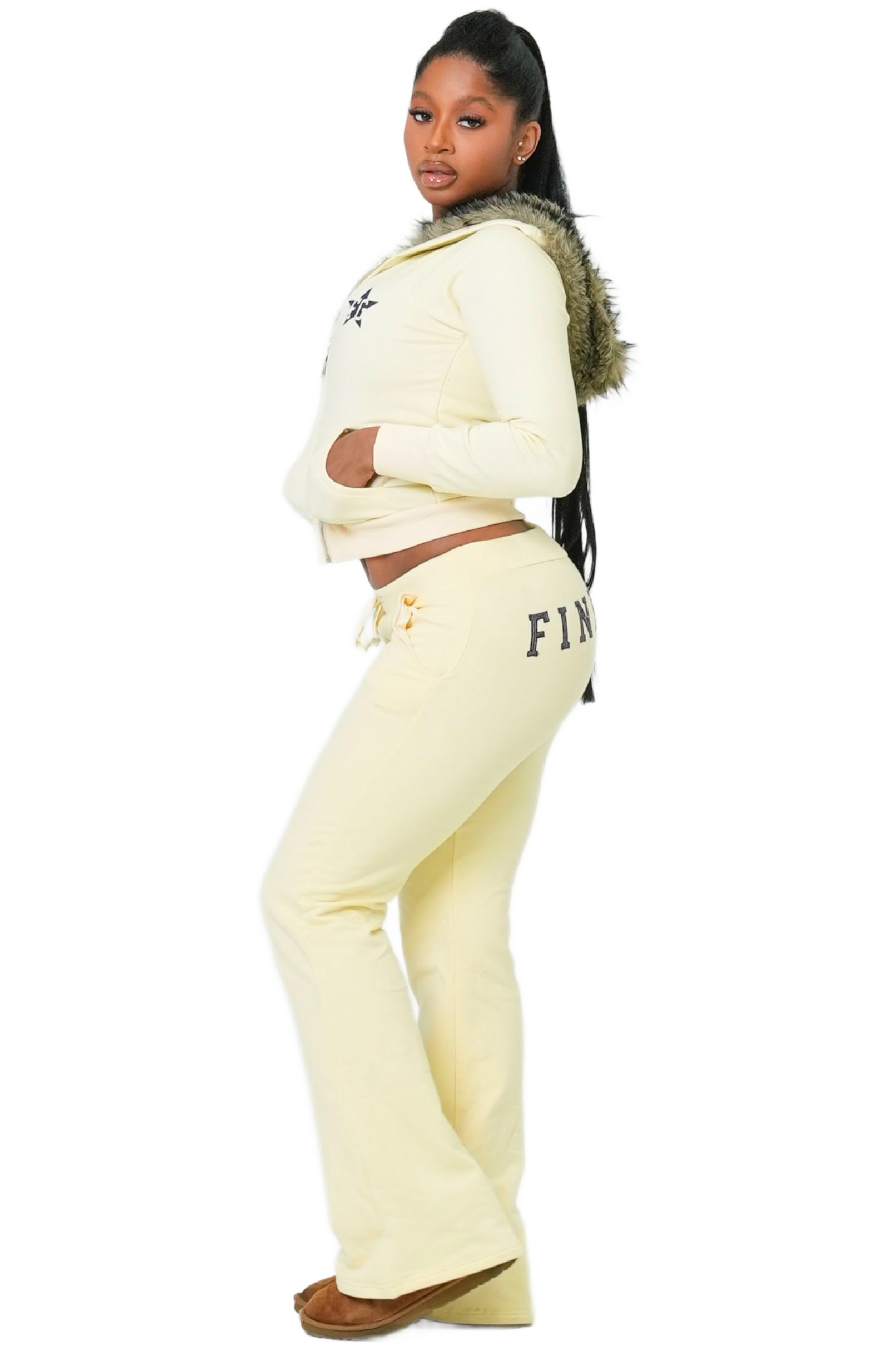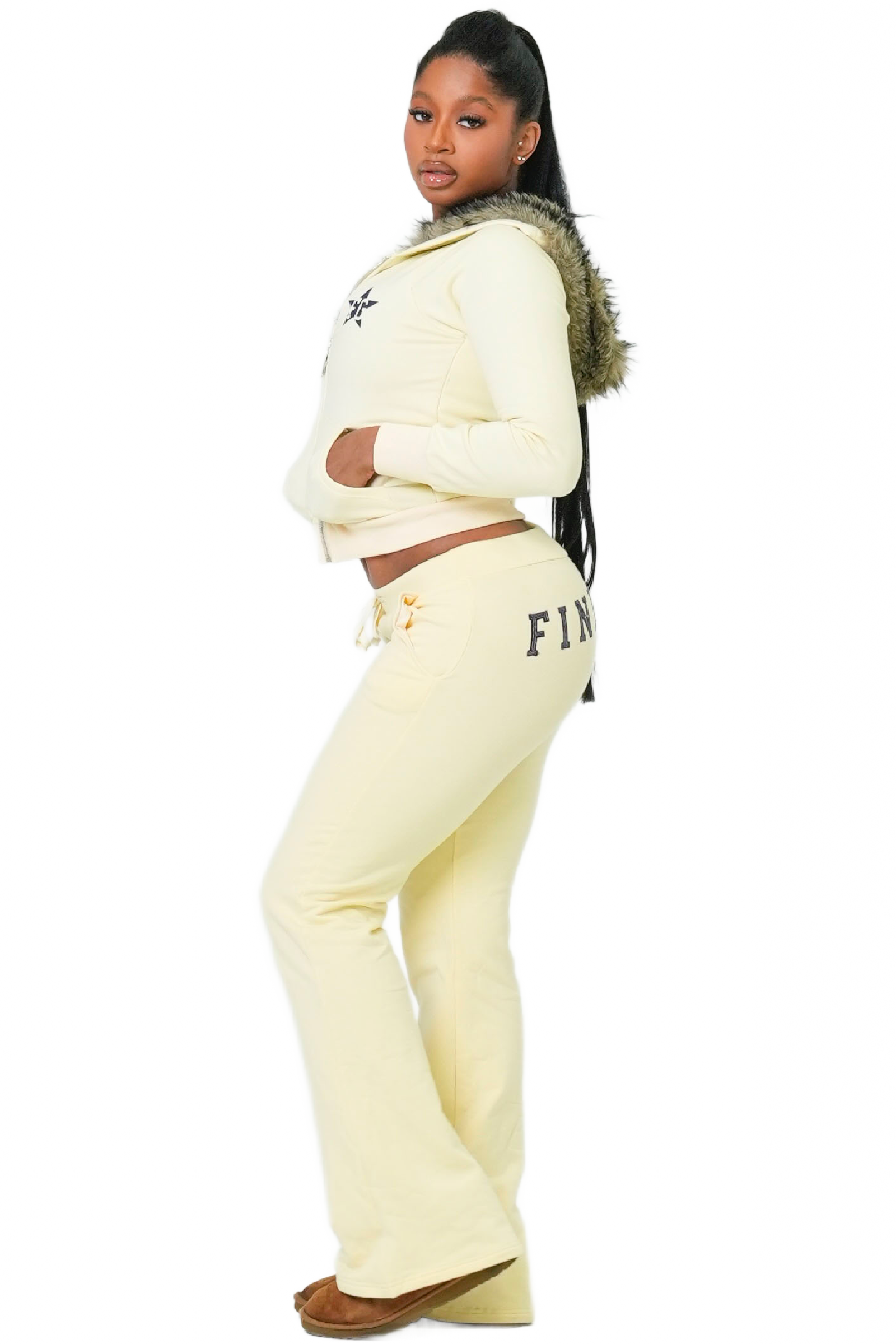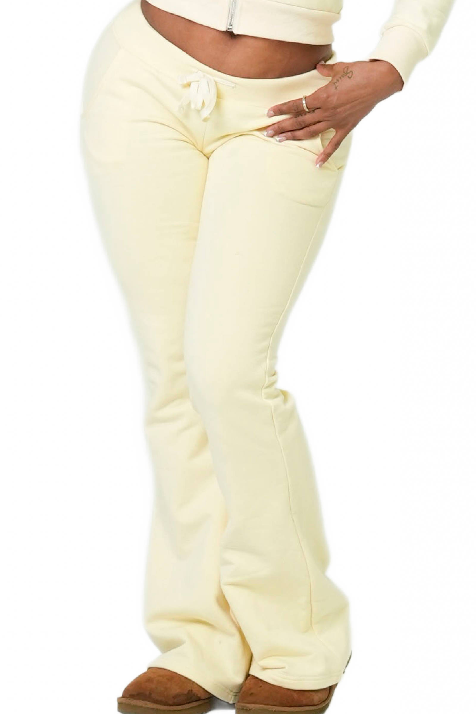 Get in FineGirl, we're going back to 2010! Be fashionably nostalgic in our So 2010 Sweatsuit! Soft and cozy cotton fabric, mid rise pants, and a flare leg that's totally '10s! What's not to love? Snuggle up in style this season.